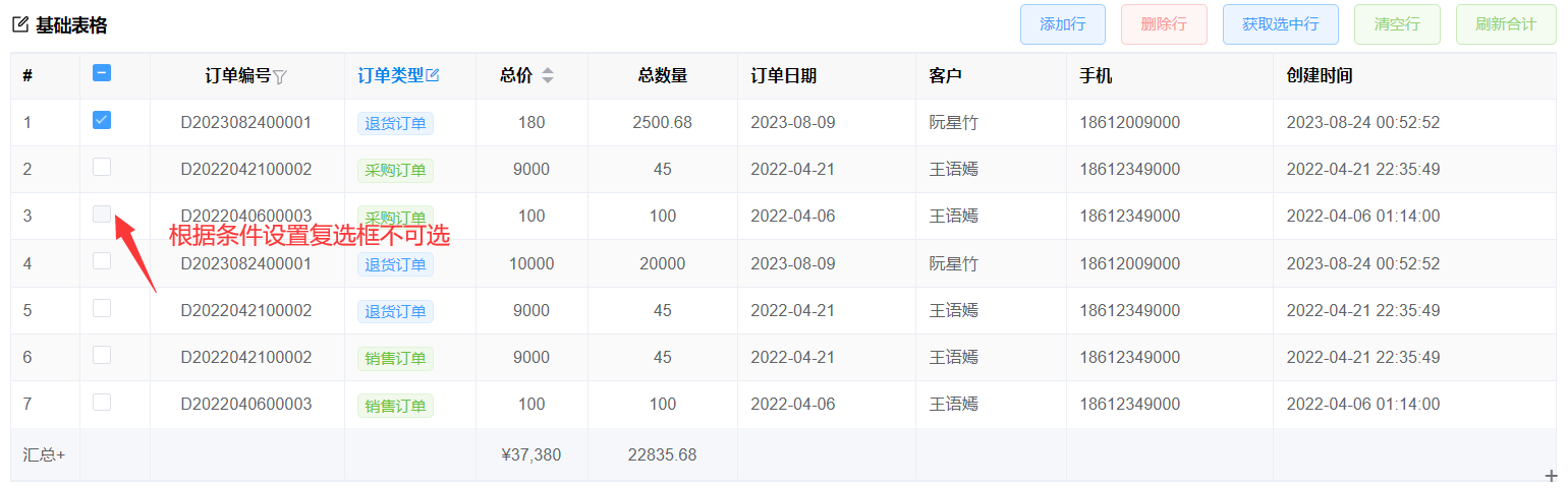 | selectable | 复选框是否可以选中,见【基础表格+事件处理】示例:selectable(row, index){return true} | function | |